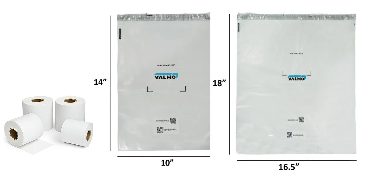 Valmo Branded Combo 2: 10×14 (1000pcs), 16×18 (400pcs) & 4×6″ (4 Roll)